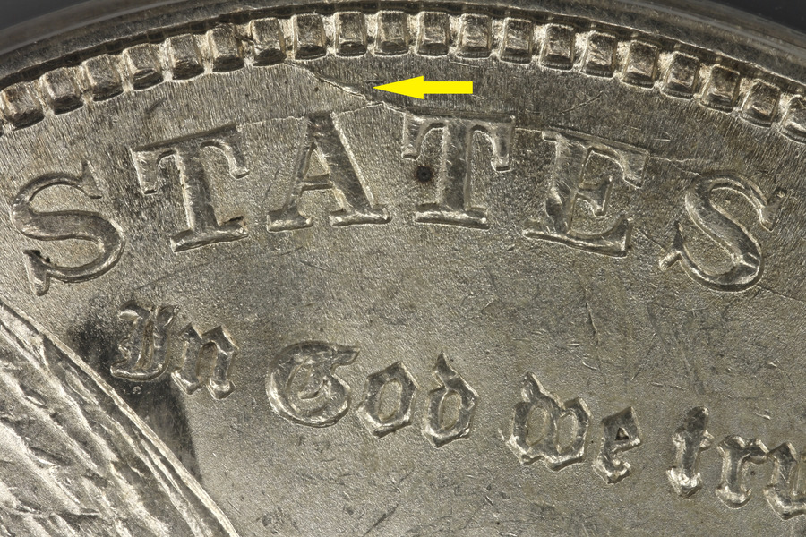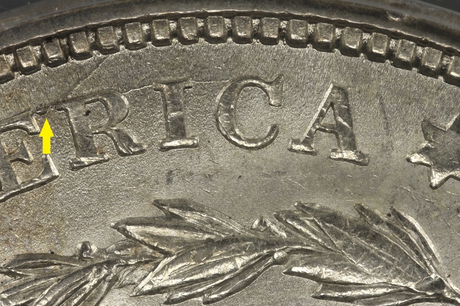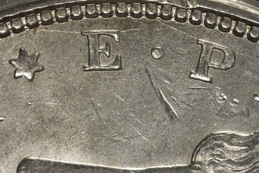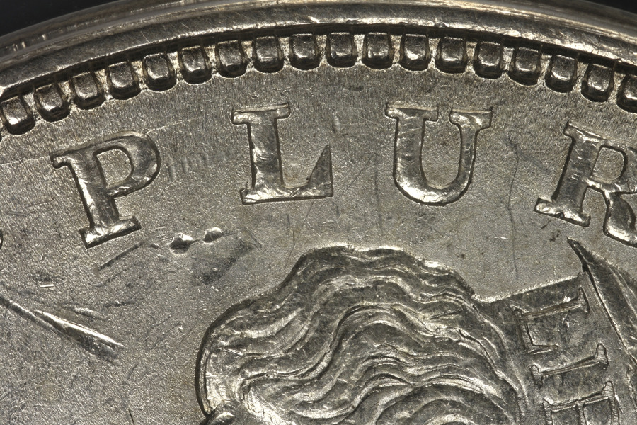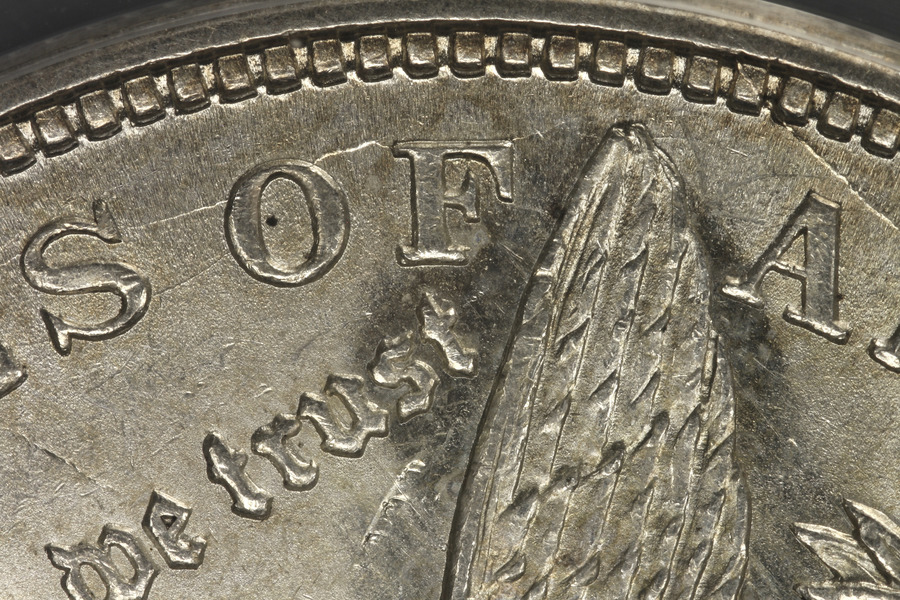 | Obverse: Aggressive polish marks throughout Liberty's hair, the cotton bolls and LIBERTY. Die chip chip between 5 & 6 right stars. |