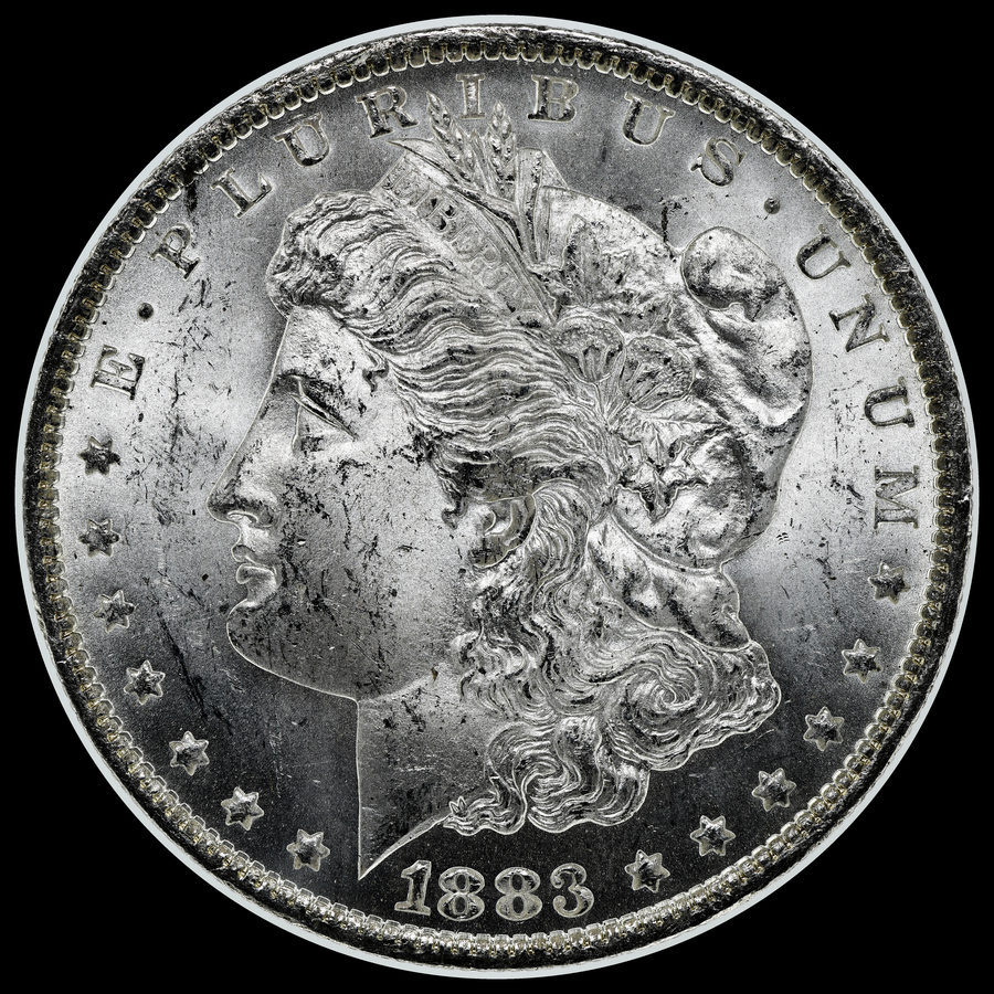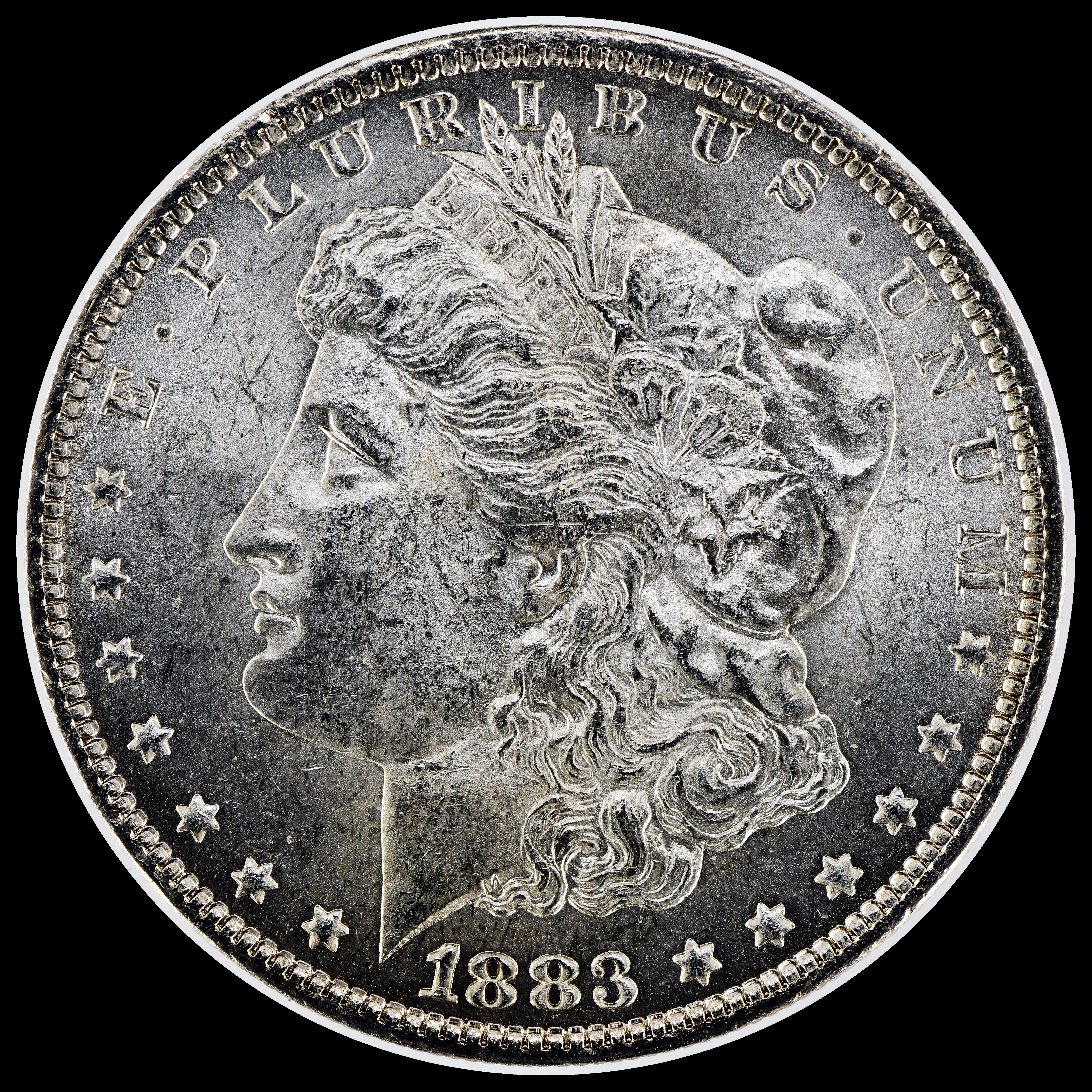 | Obverse: Dashed 8, high 8, 1 doubled at bottom of flag and at top right vertical shaft, first 8 doubled at left inside of upper and lower loops and top inside upper loop, 3 doubled at lower inside margin of lower loop, crack from front of cap bun with displaced field (lower off tangent than V-19A), crack bridging cap V with displacement, crack bridging bottom hair V and continuing to above designer initial, crack crossing toes of bear claw, crack from front hair margin extending vertically into the filed in front of the forehead. Vertical crack crossing the bridge of the nose and passing in front of the nostril, micro-crack connecting LS5-6, no wing clash on obverse (no neck clash on reverse), concentric line bridging cotton bolls, three lines crossing the cap fold, small gouges at bottom of cavum, doubling of right star #6, die chip at the apex of the left arch of the M of UNUM, slight doubling at front of legend and at forehead profile. |