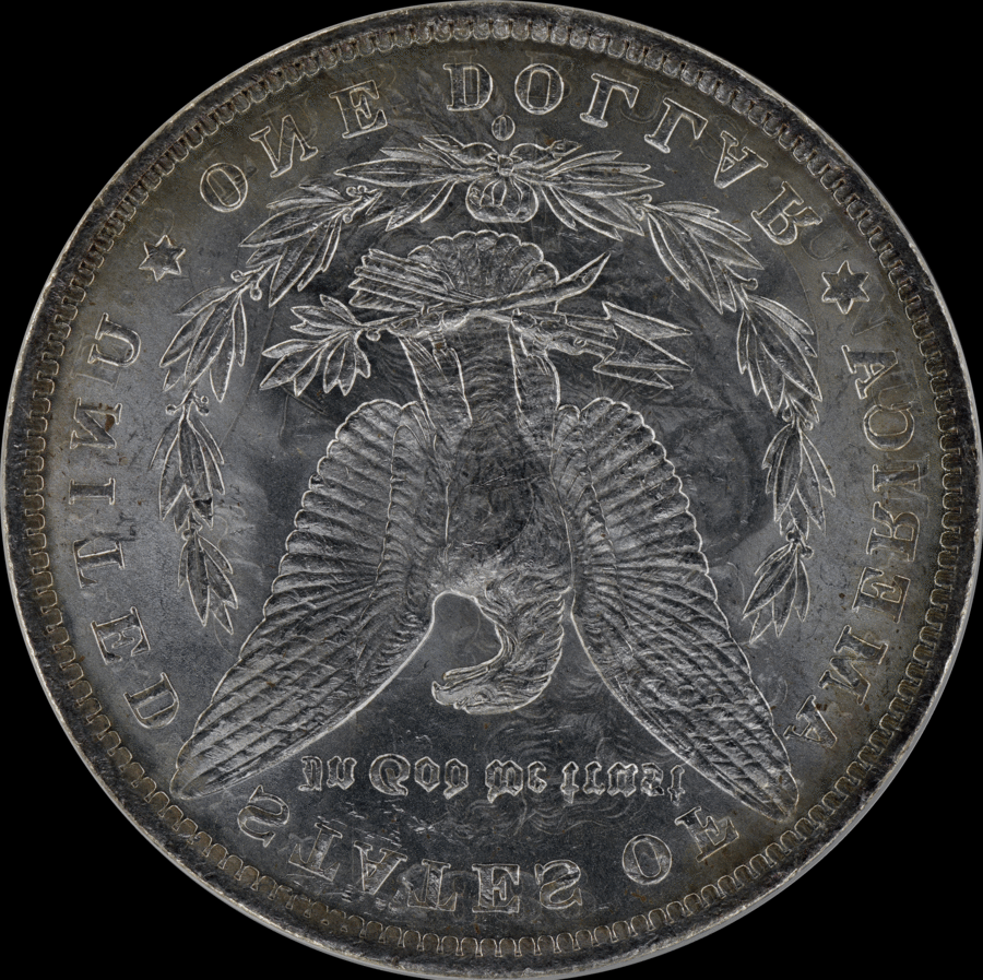 | Reverse: Diagonal line in MM similar to VAM-10/24/29, metal dots between bow and RW5, weak cap V clash at 1, neck clash at 1, wing clash at 1, chip third upper tail feather, diagonal line in right leg triangle, beveled wreath RW2-3, over-polished LW2, doubled left wreath, dented denticles in lower left quadrant. |