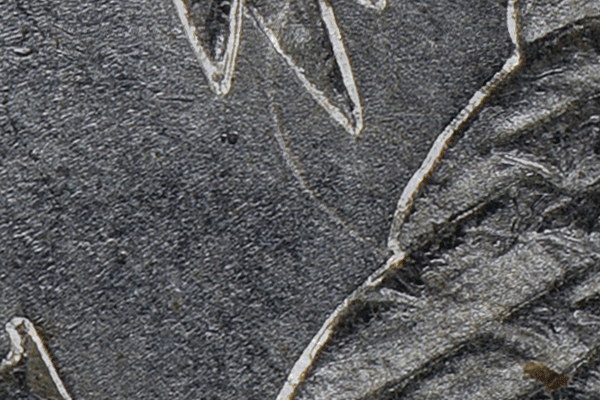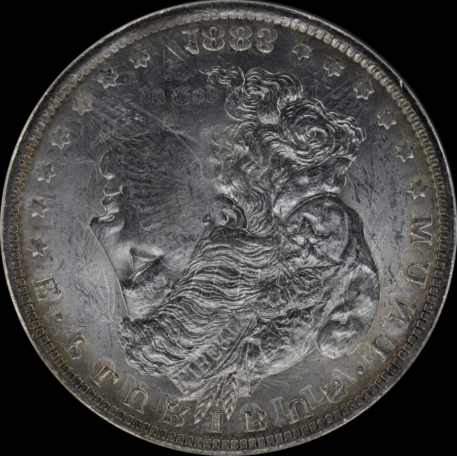 | 1883-O VNA03_3276 - Obverse Clashed by the Reverse: Wing Clash at -2.4 Degrees | 1883-O VNA03_3276 - Reverse Clashed by the Obverse: Neck Clash at -2.4 Degrees |
