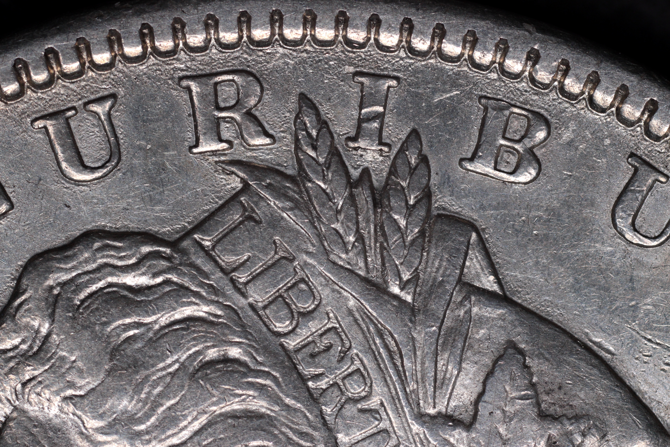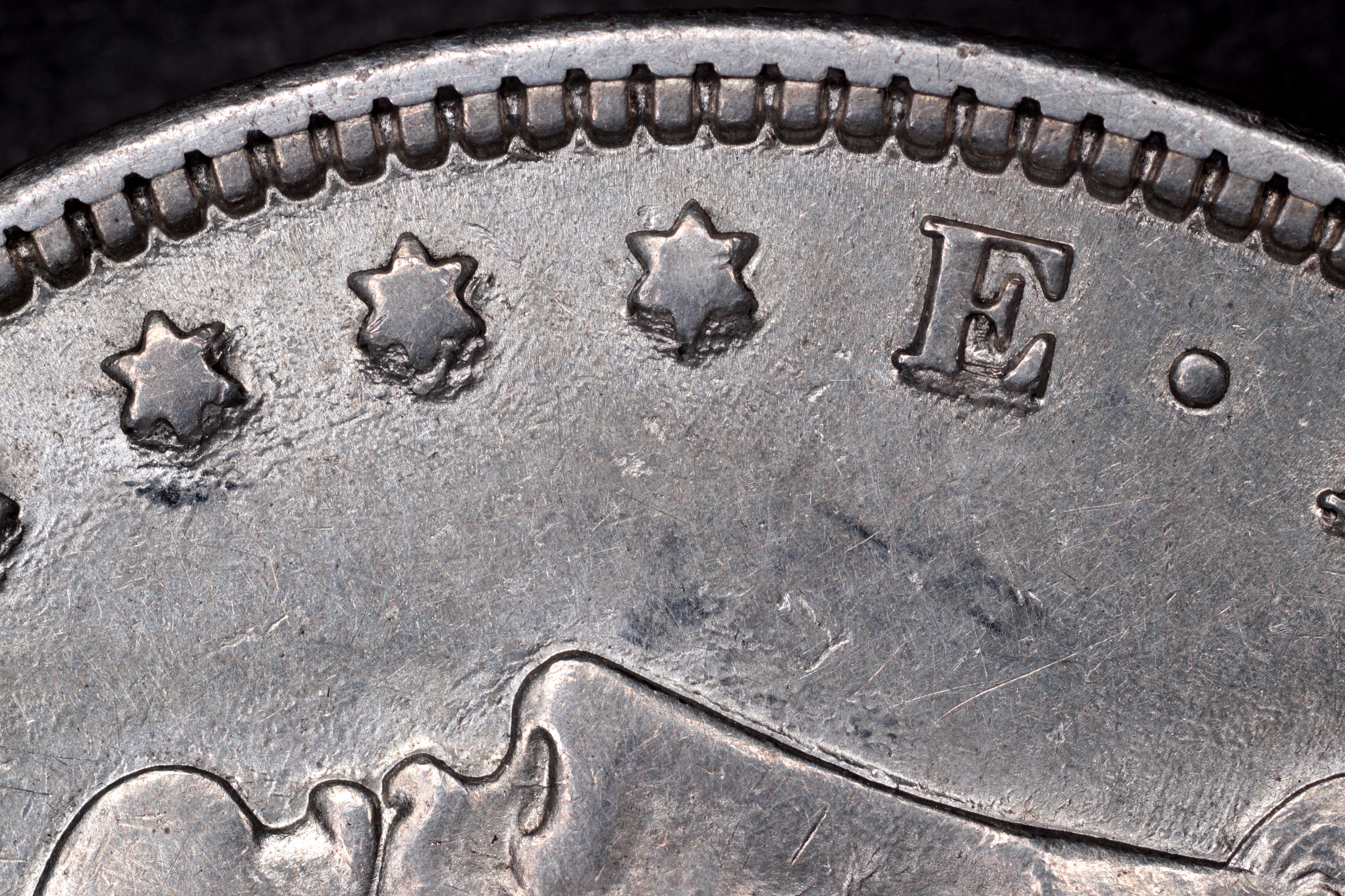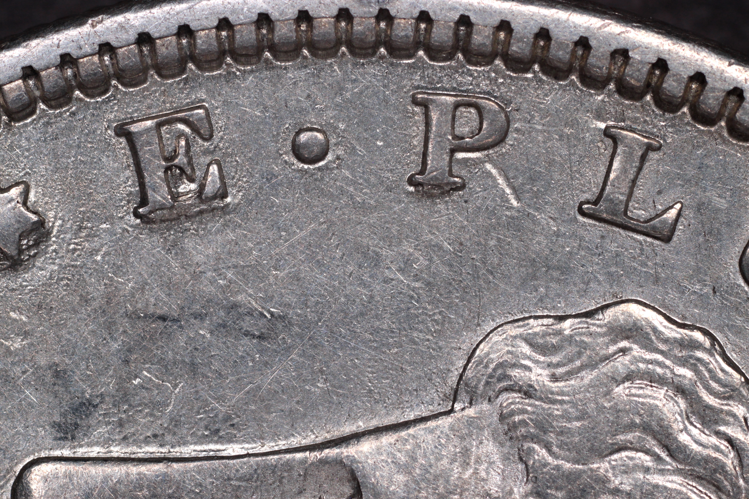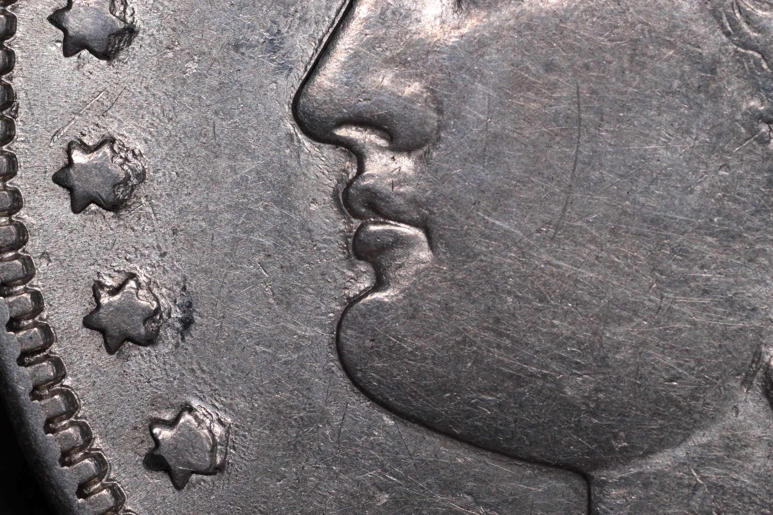 | Obverse III2 8 Date set further right than normal. Extreme die wear showing as built up metal on all left stars, first right star and E-P towards coin center. |