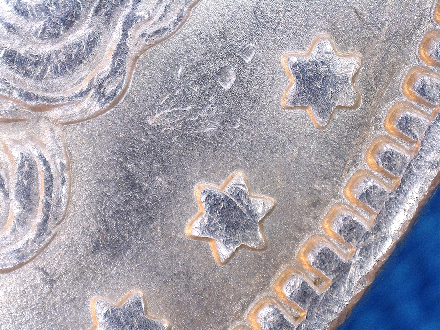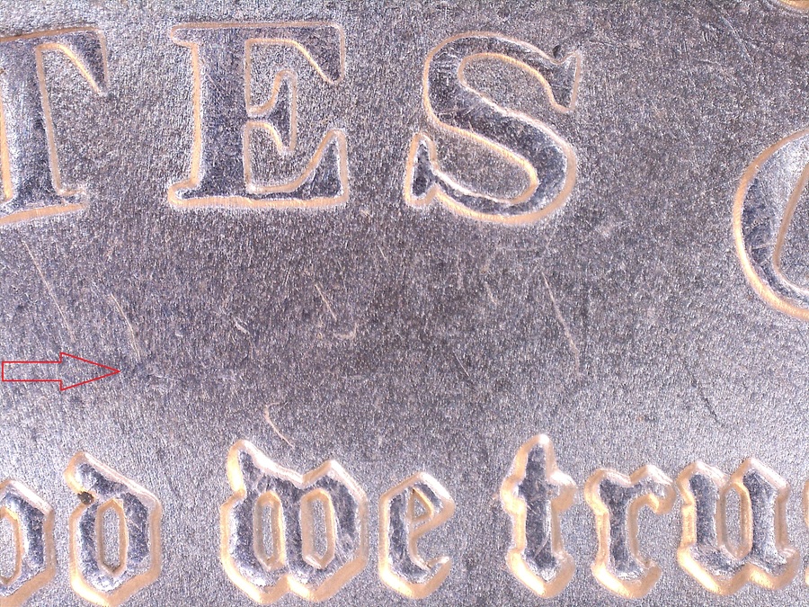 | Reverse: High "O" MM . Possible Clashed designer's intial "M" above d in God. |