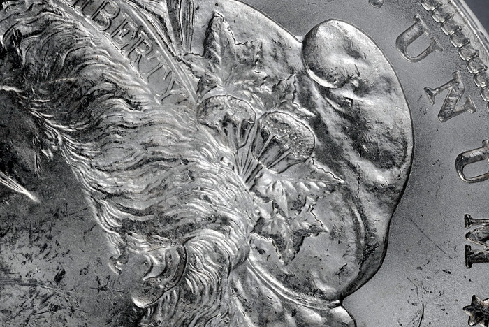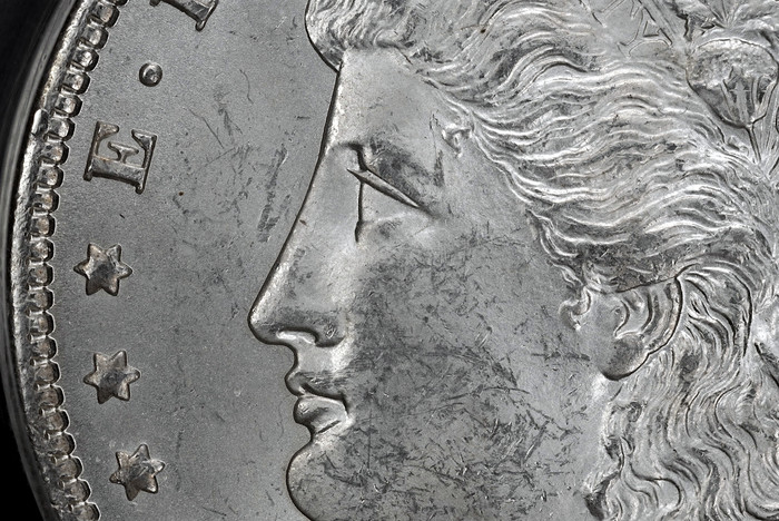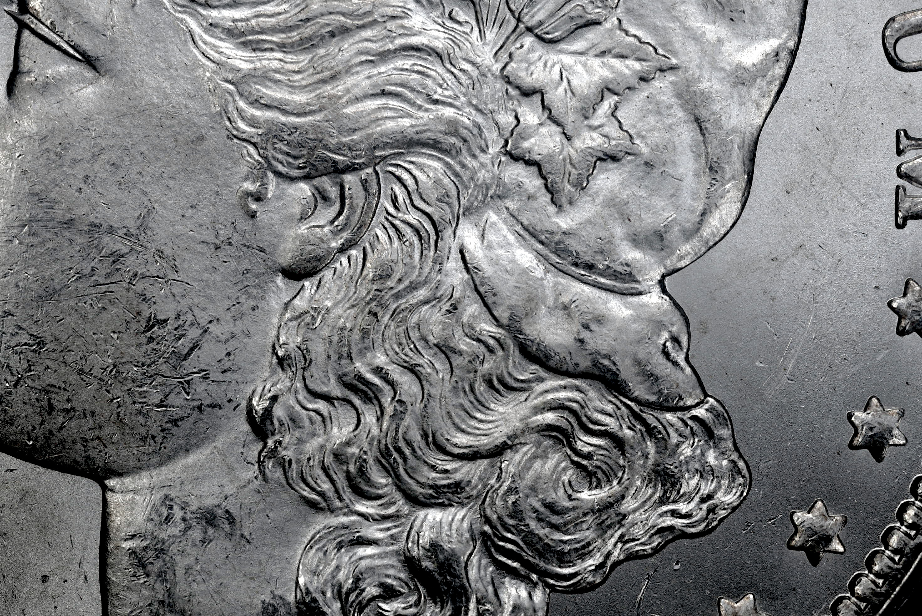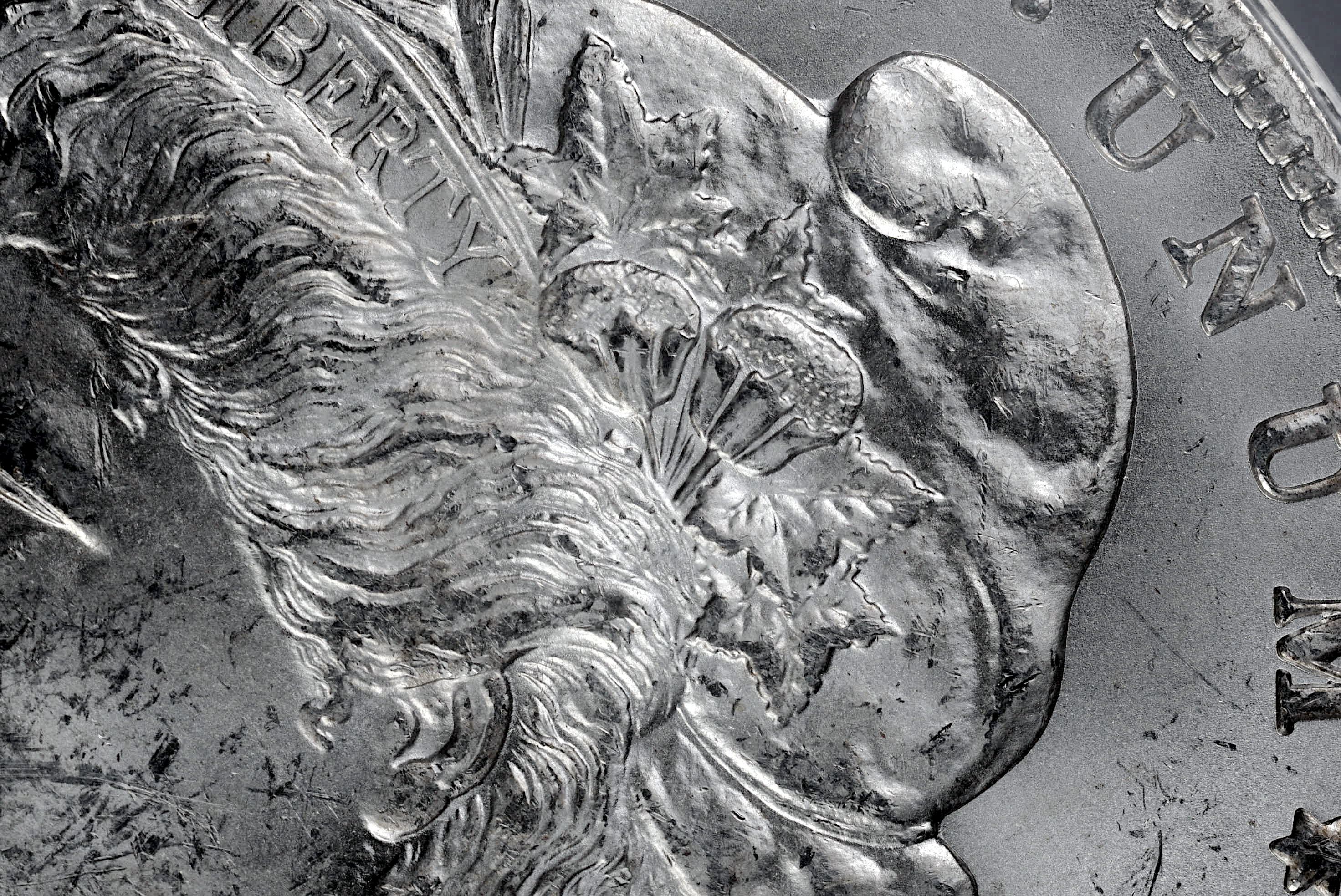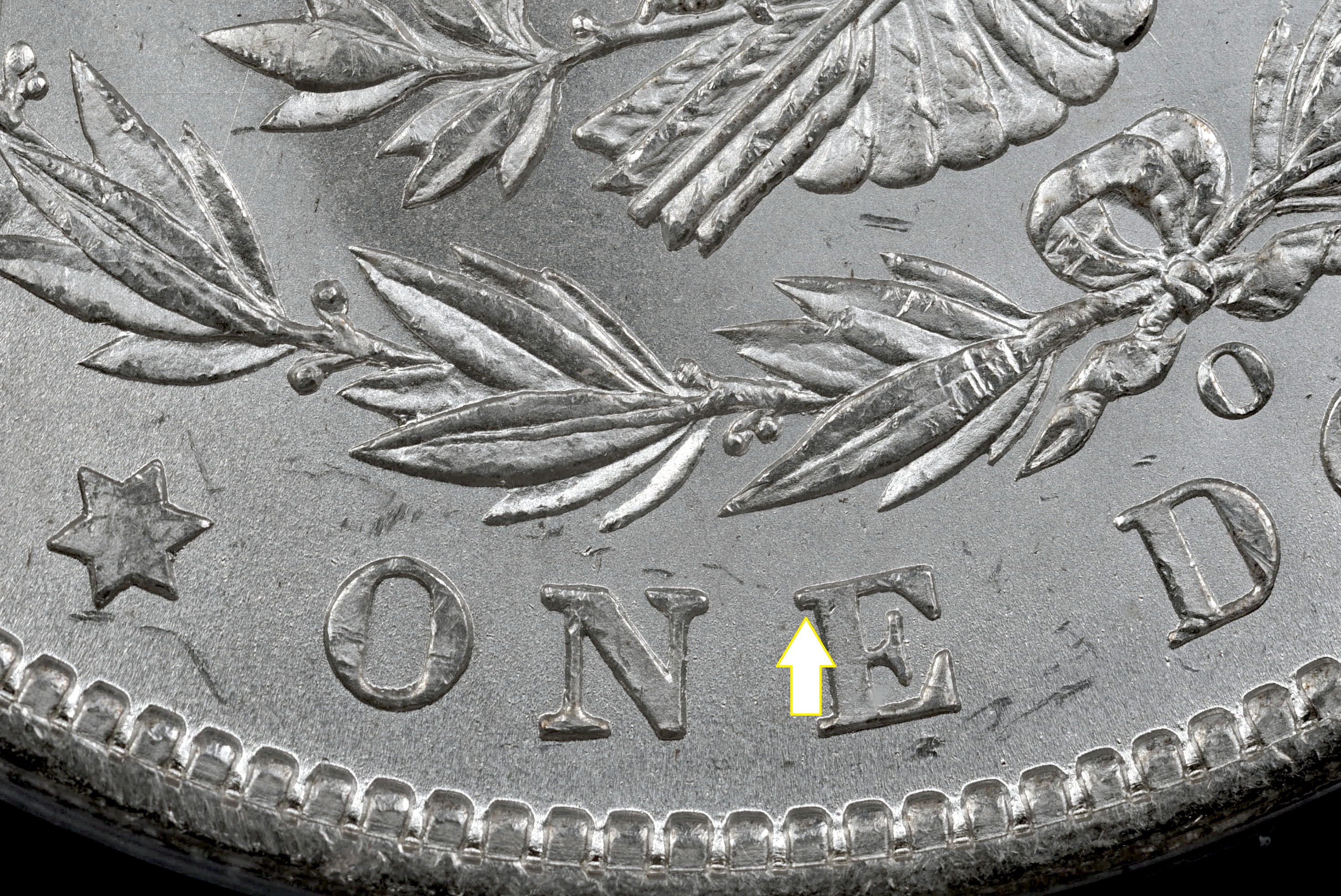 - A feature that has been described as a "Snail" due to its shape, appears on a leaf of Right Wreath Cluster #4. This feature is of the Hub and is seen on Morgan Silver Dollars that were minted from at least 1881 through 1904. A photograph of this feature can be viewed at Photographs of Special Interest. Other features of interest are included in the section entitled Photographs of Special Interest.