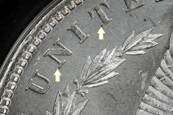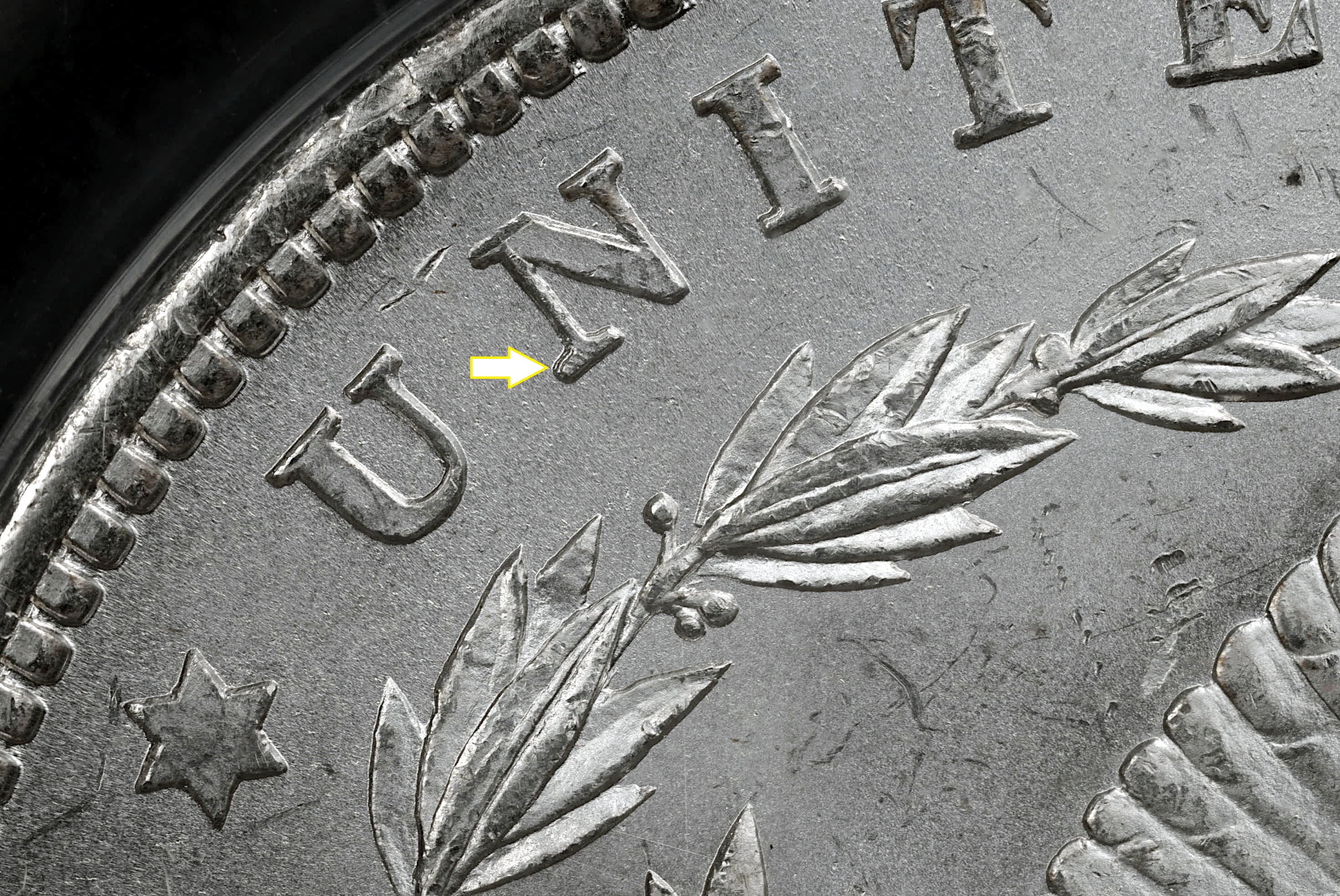 UNITED is slighly tripled at the lower serif. There is a single horizontal Die polishing line at the Eagle's Right Leg triangle (Left triangle as viewed).