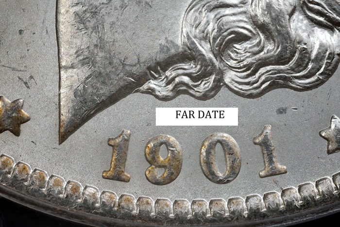 OBVERSE ATTRIBUTES: The Date is set to the left of what is considered within normal Date tolerance.