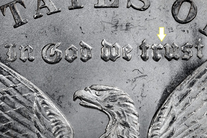 In God We Trust, are doubled rimward as is the top of the Eagle's Head. The Mint Mark is set high high and centerally positioned.