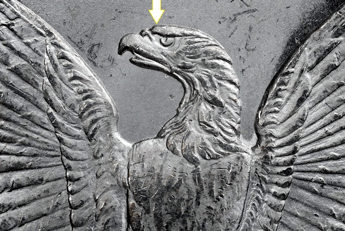 Comment: Die polishing line in the Eagle's right leg triangle, as viewed. |