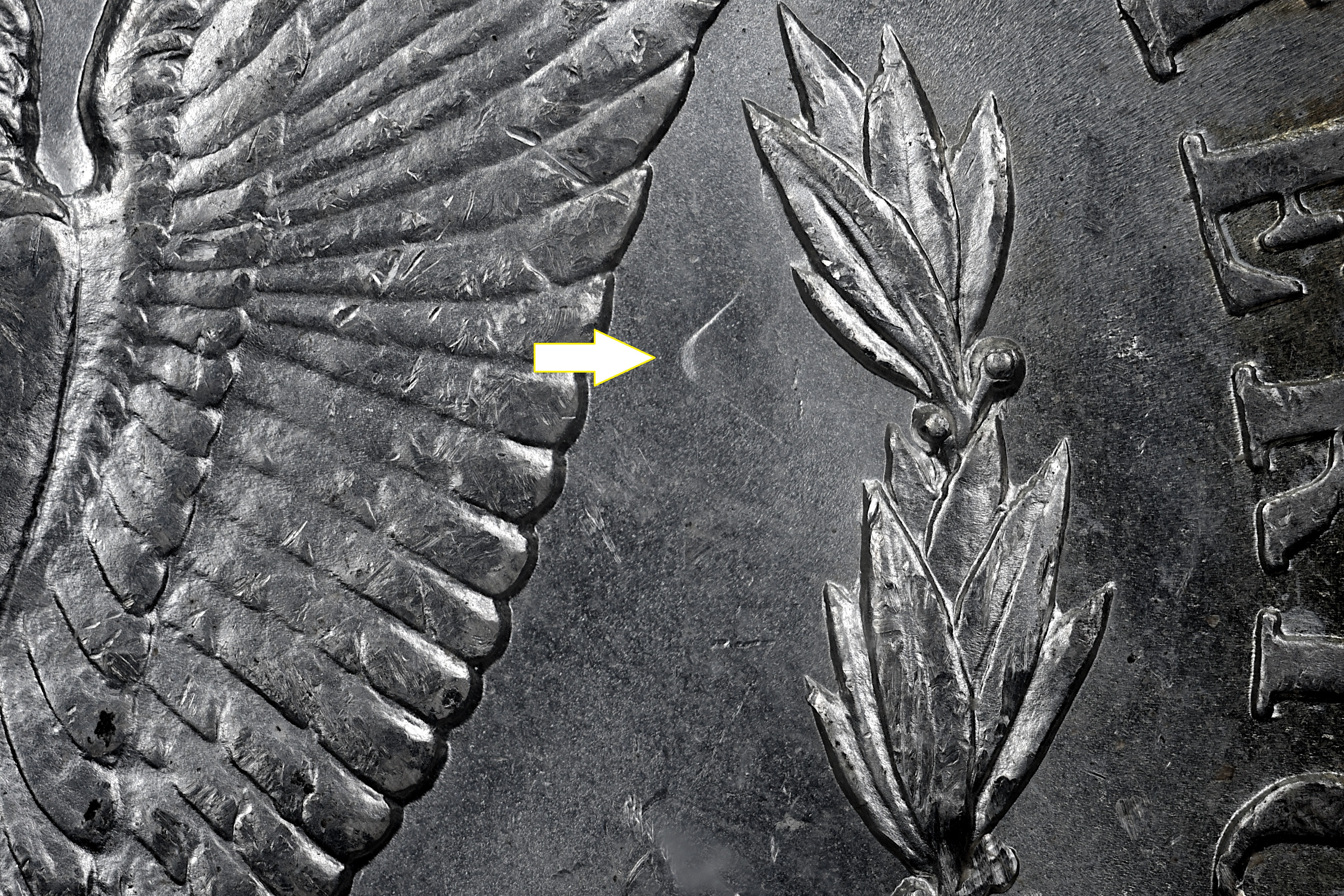 Comment: Obverse Clash Line. This feature was created by the clashing of the Eagle's Right Wing (Left Wing as viewed). |