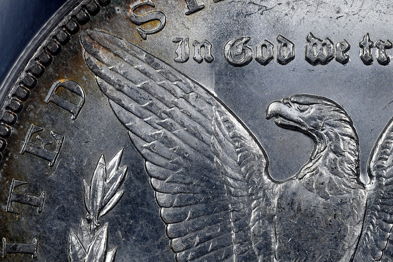 In God We Trust, can be seen in the Field just off Liberty's Neck Line. The last two letters of the Reverse Motto,