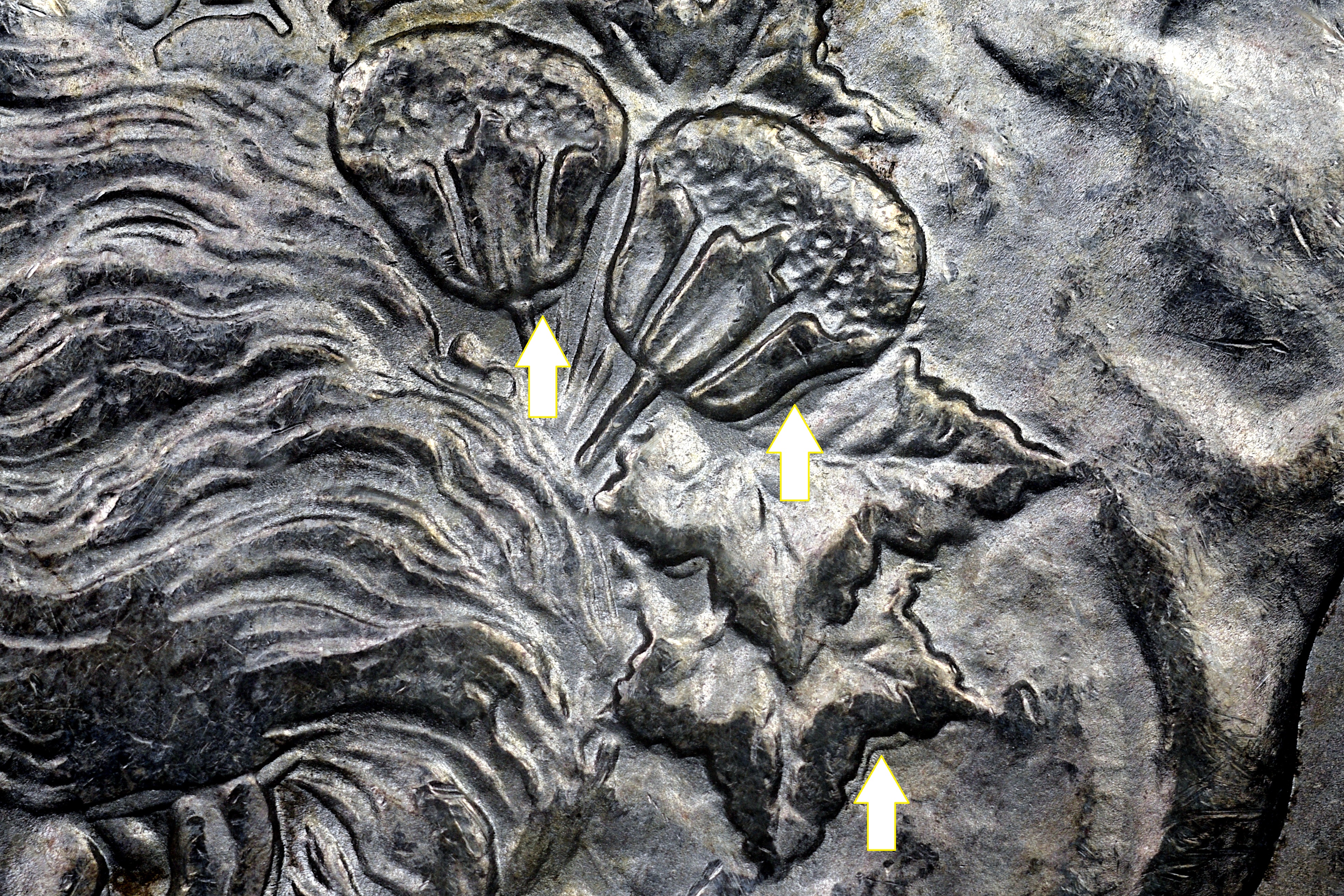 | Comment: Doubling of Leaves of Left Laurel Wreath. |