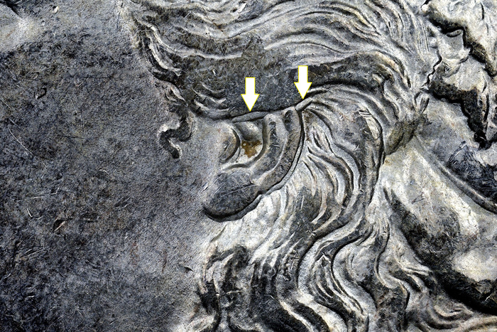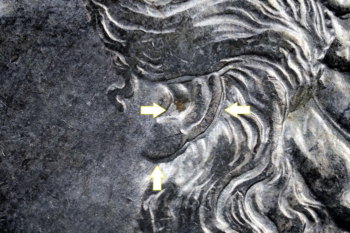 OBVERSE ATTRIBUTES: Doubling of the Ear, Profile, and Reverse Legend.