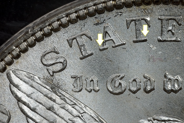| Comment: The "Snail". | Comment: The A in DOLLAR is double on the left side (right side as viewed.) |