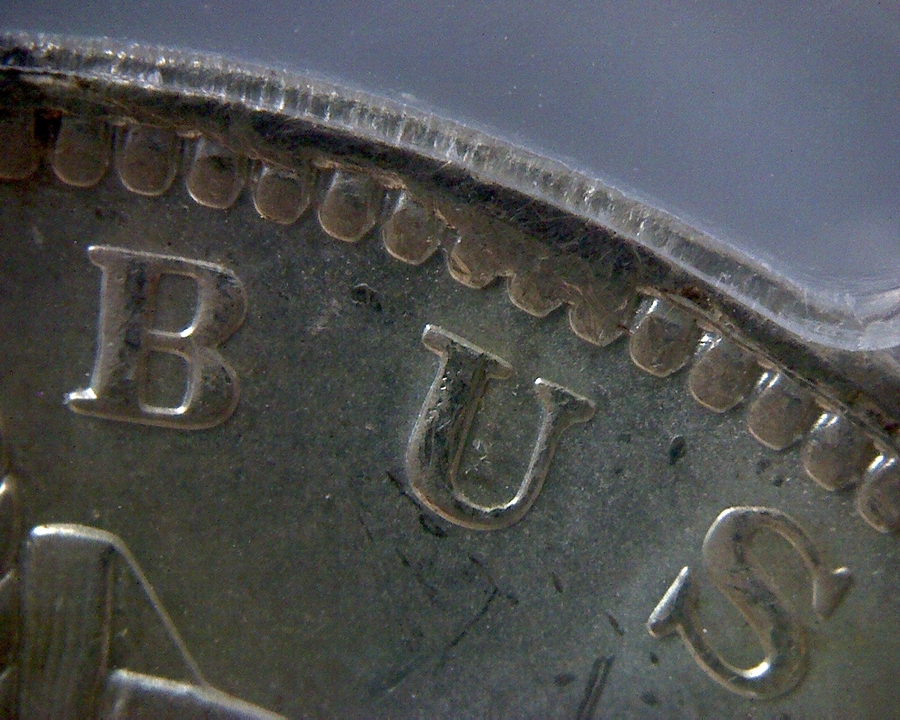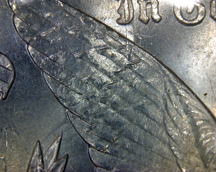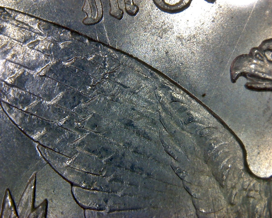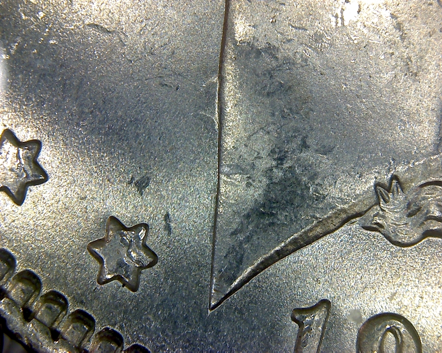 | Reverse: Slight counter-clash on left wreath top right. Pitting of "OL" in DOLLAR. |