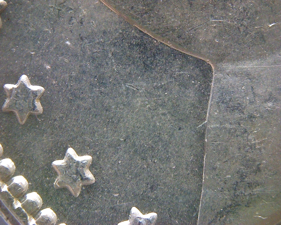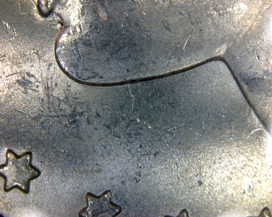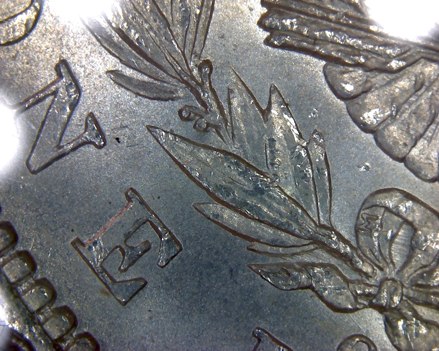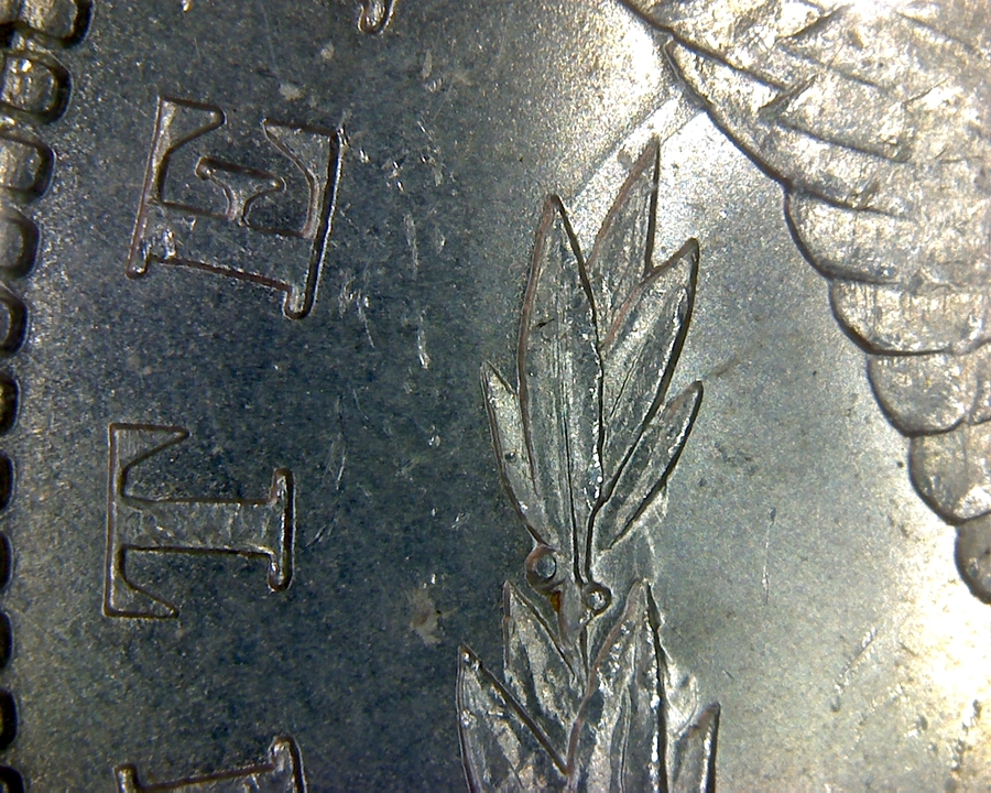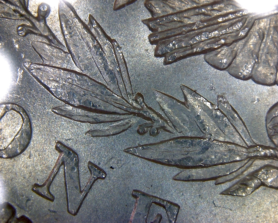 | Photographs are of raw coins. Characteristics are described with a degree of granularity intended for die identification more so than for die classification. A characteristic may not span the entire die progression. Thus, not all characteristics may be present in any one coin. None of the described characteristics are vetted by a third party grader. Click on a photograph to enlarge. Then click on a region of interest for maximum detail. Click "back" to return. |