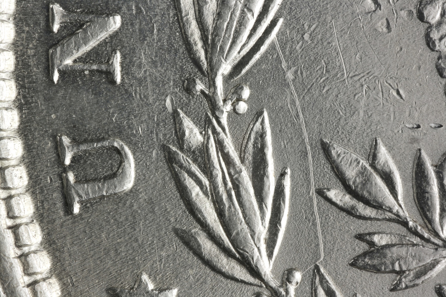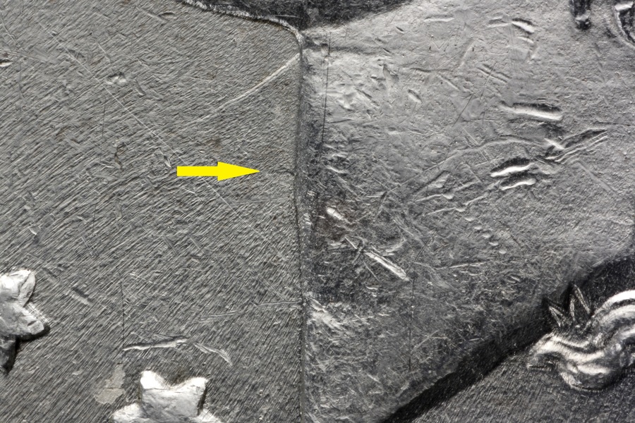 | Obverse: III246 Date set in the Normal position. Second 8 is doubled. 0 is tripled. Clashed die with faint partial incuse n of In from reverse showing as short tick next to Liberty head neck. Double wing clash on Liberty's upper neck. Wreath clash at the cap vee and on back of cap. Faint partial incuse st of Trust from reverse showing in right hair vee of lower hair edge. Wreath clash marks on Liberty's lips and chin. Marker Vertical polish line in the cap fold. |
