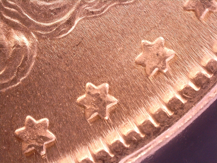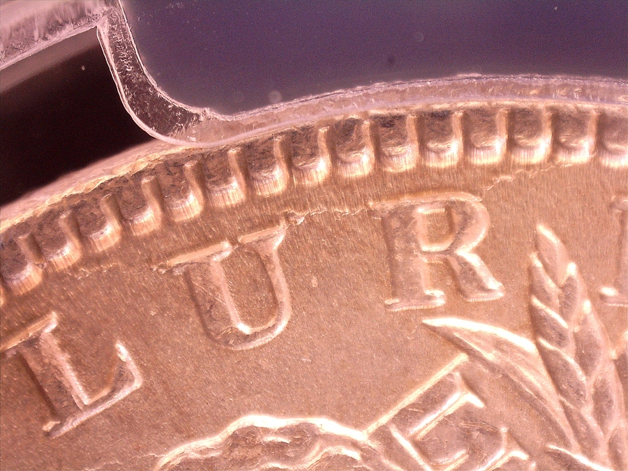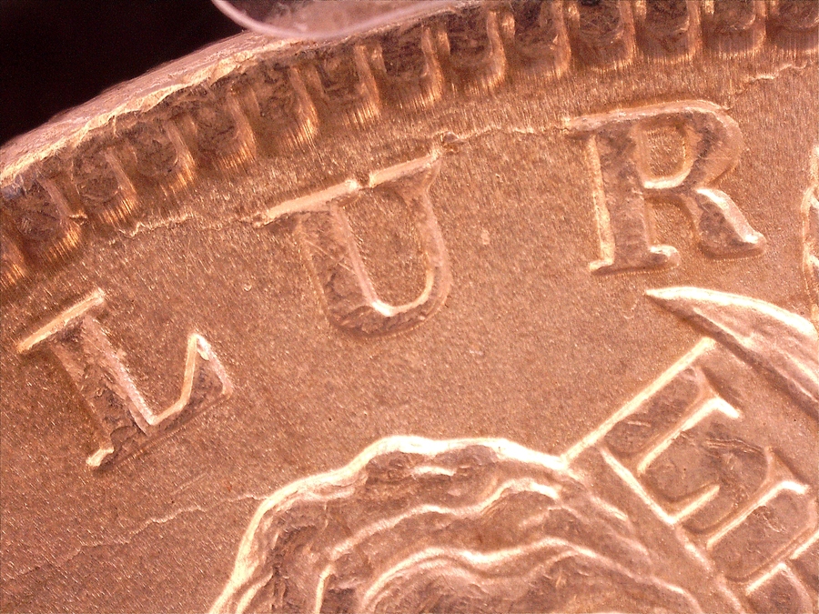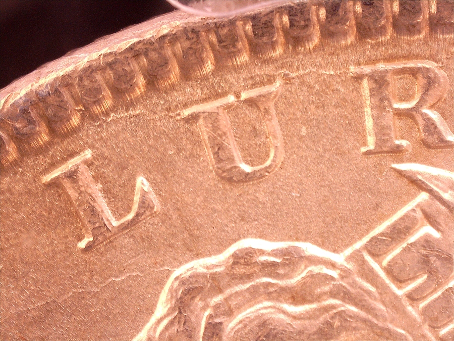 | Obverse: Date left of normal. Doubled Ear inside, Triple stars. Die Crack from rim to rim above "UR" of PLURIBUS with displaced field. |