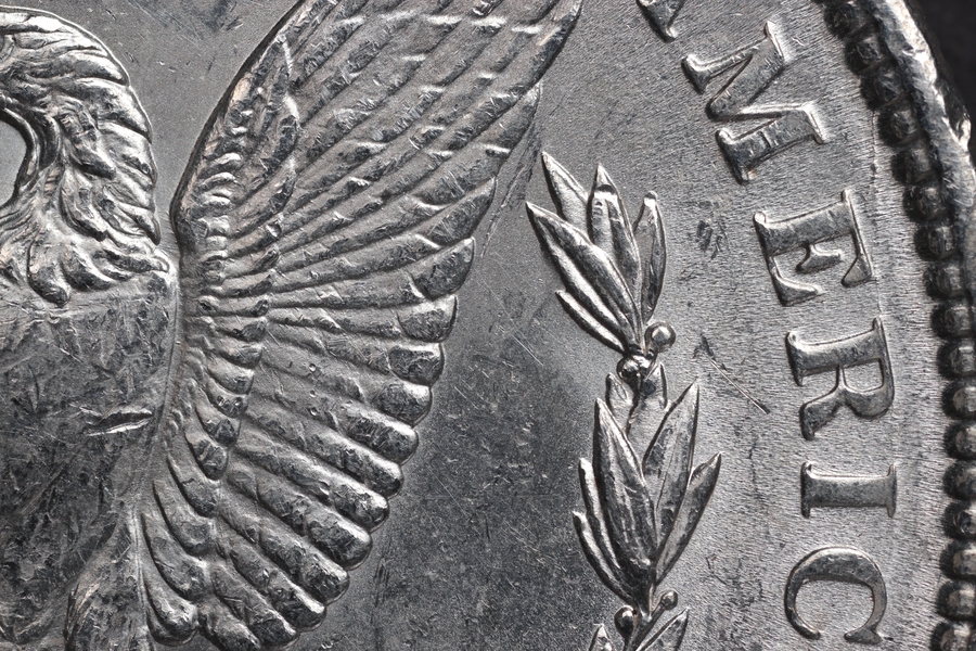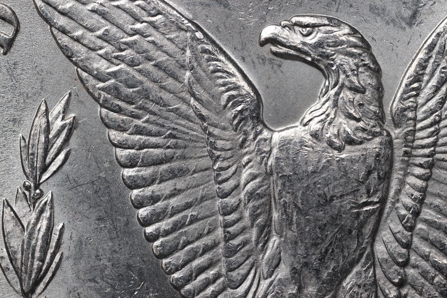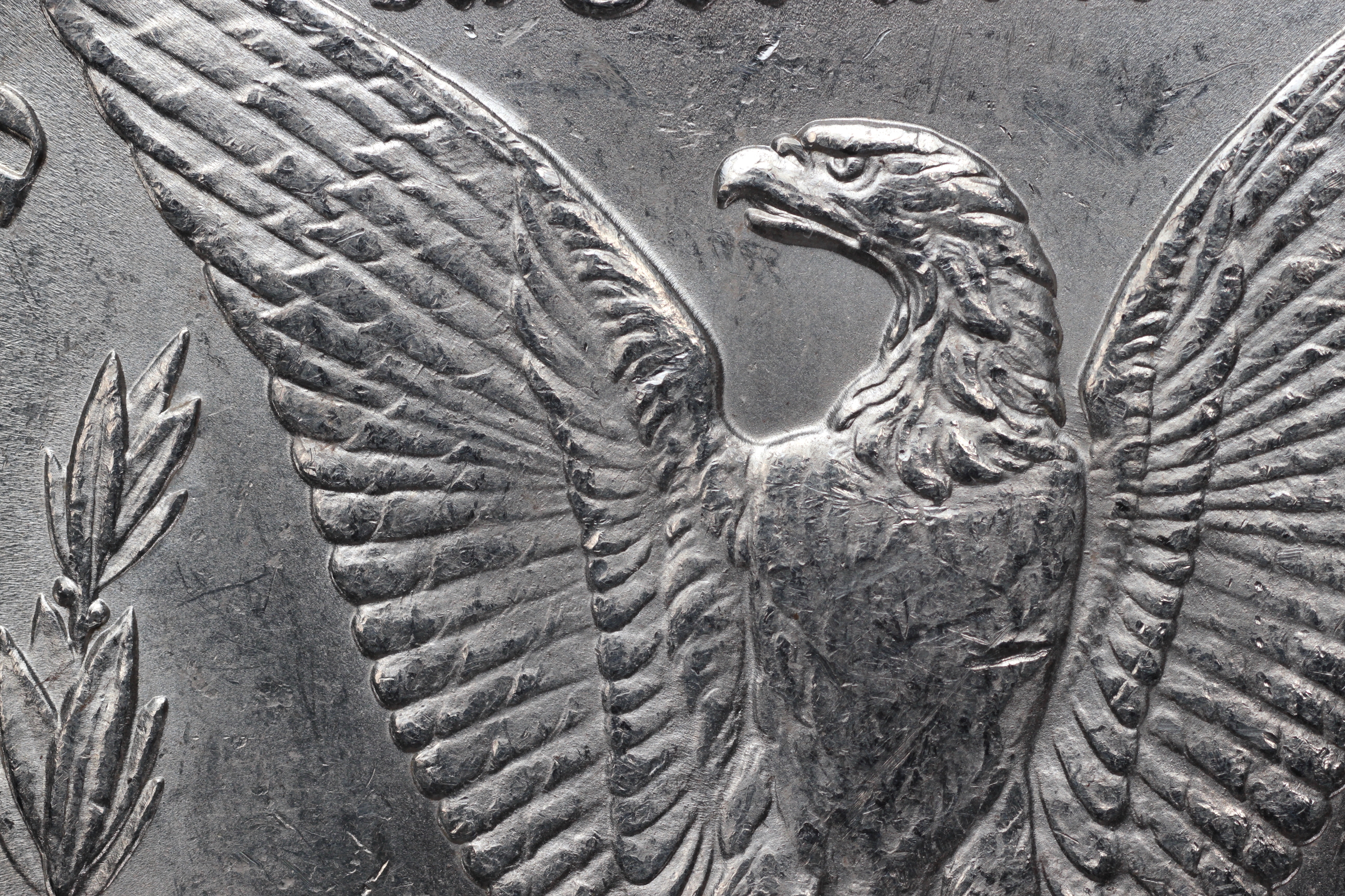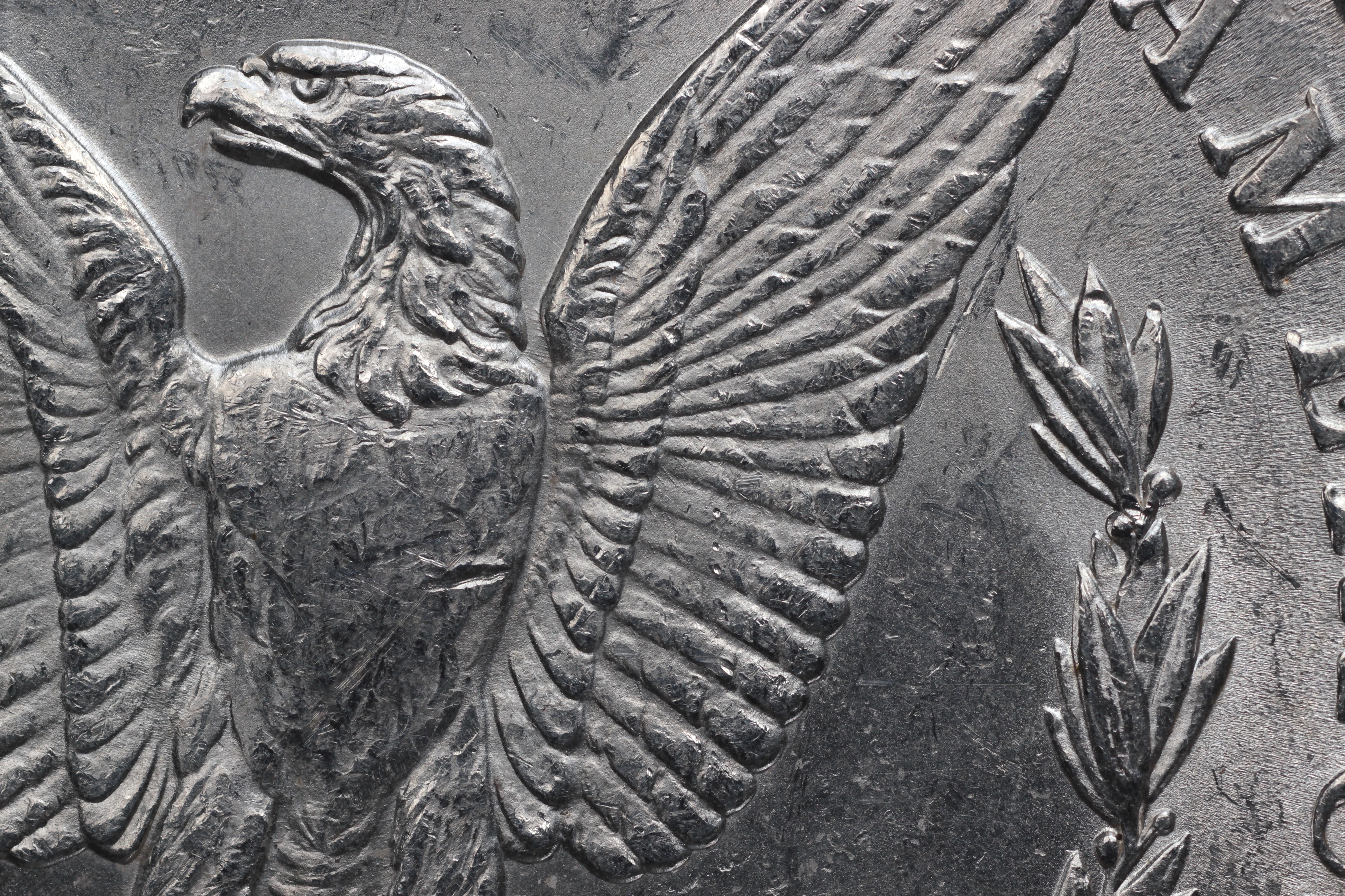 • Distinct gouge lines at the center of the eagle's left/right wing and at the bottom of the left wing.