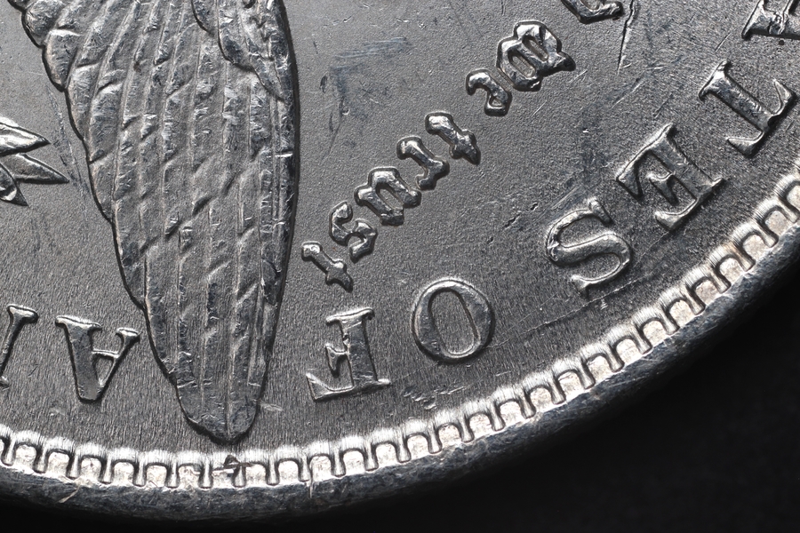 • Die marker- Single raised dot in the right leg of the R of LIBERTY.
