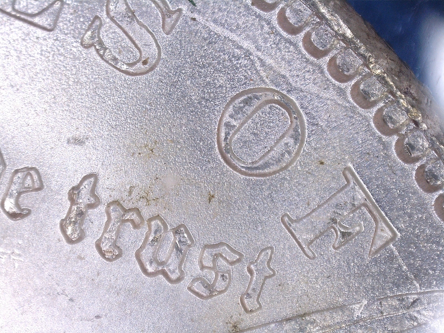 Die-Marker: Fine crack on reverse thru "O" of ONE continuing thru bow.