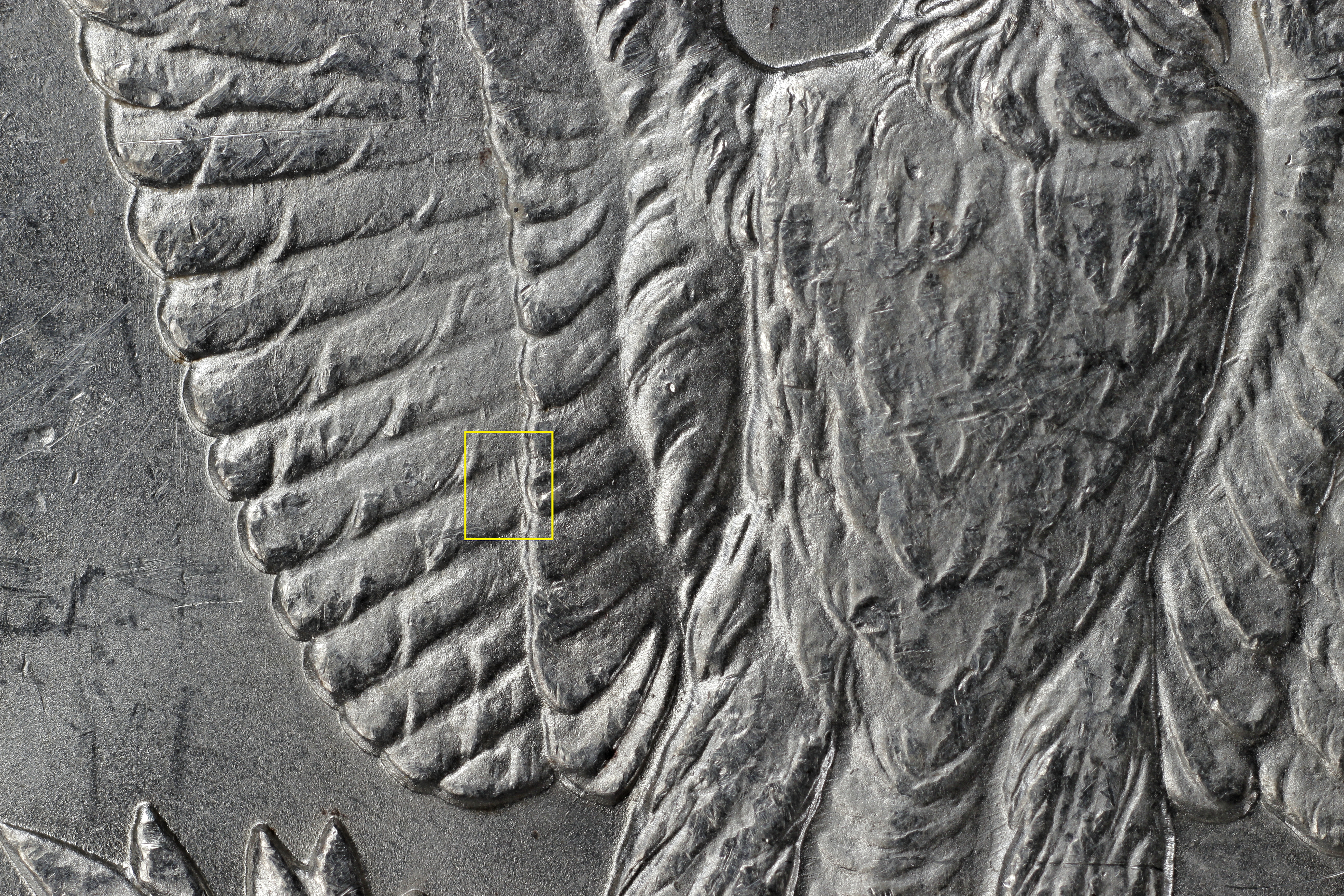 • Numerous die gouges in the eagle's central left wing and the wing/body junction.