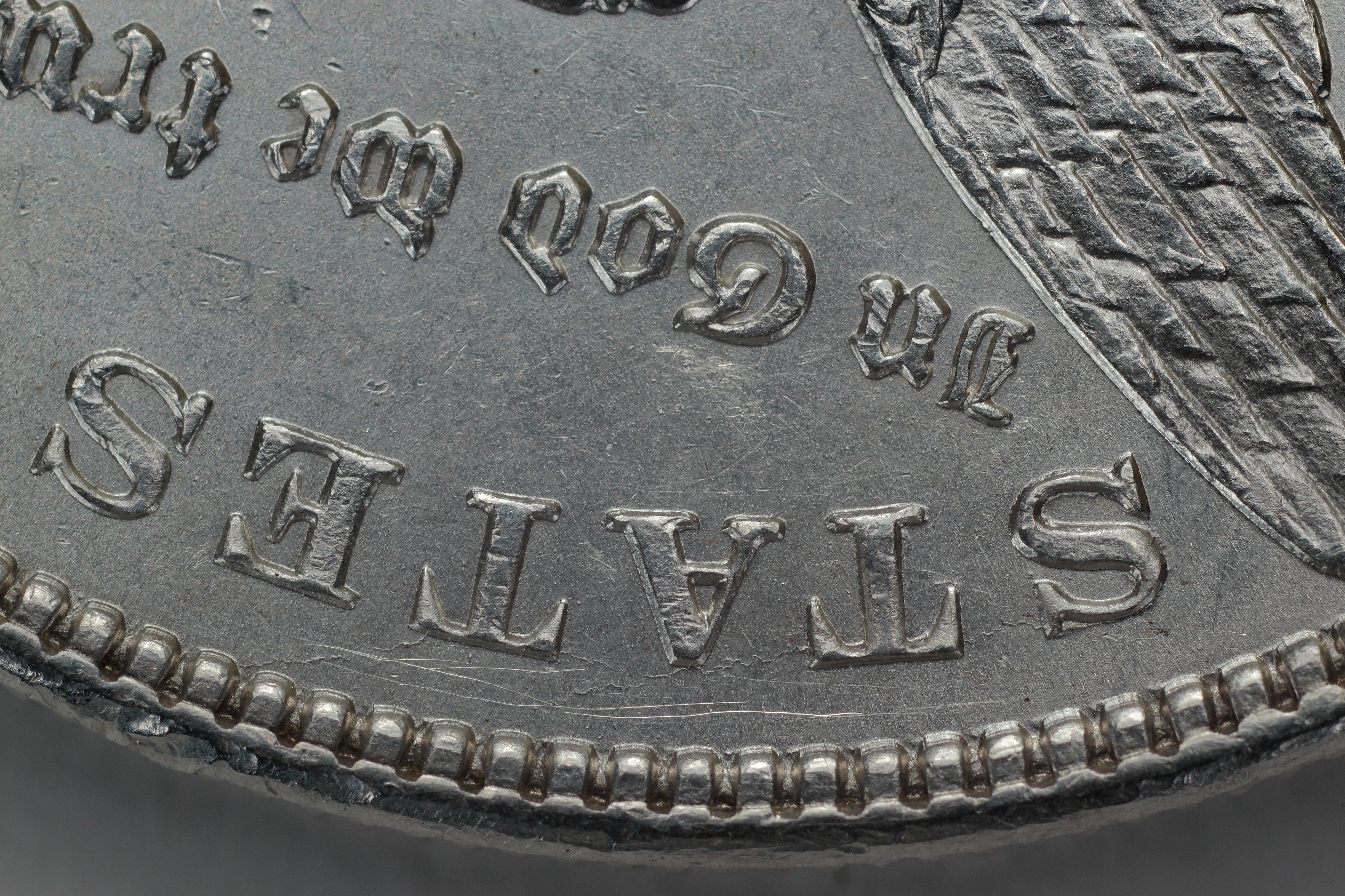 | This coin has die cracks similar to a 2B, but does not have the die breaks and field displacement at NITED a 2B does. | |