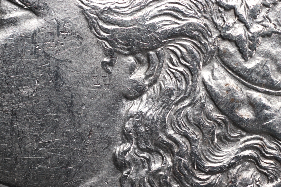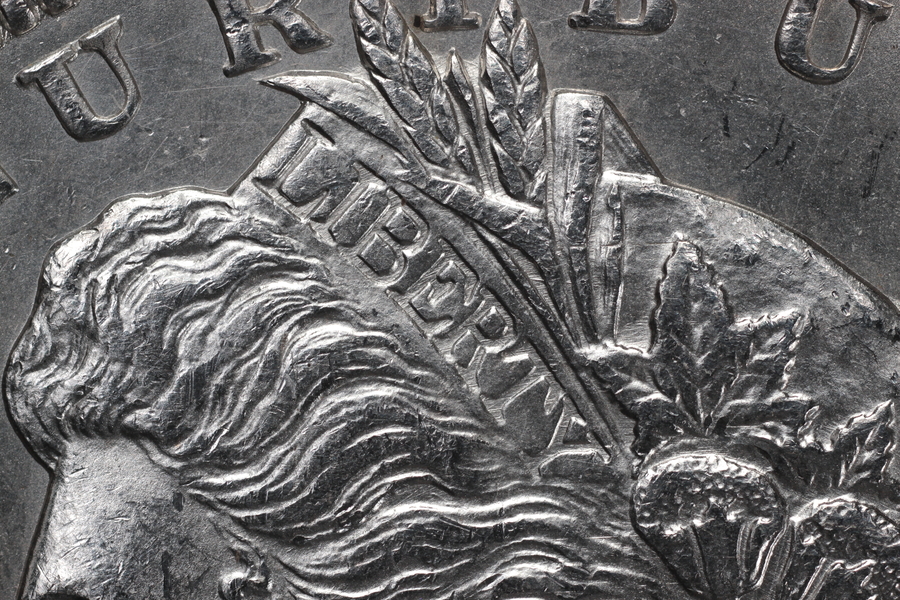 • Dense polish lines in the lower hair, LIBERTY banner and in/around the cotton bolls.