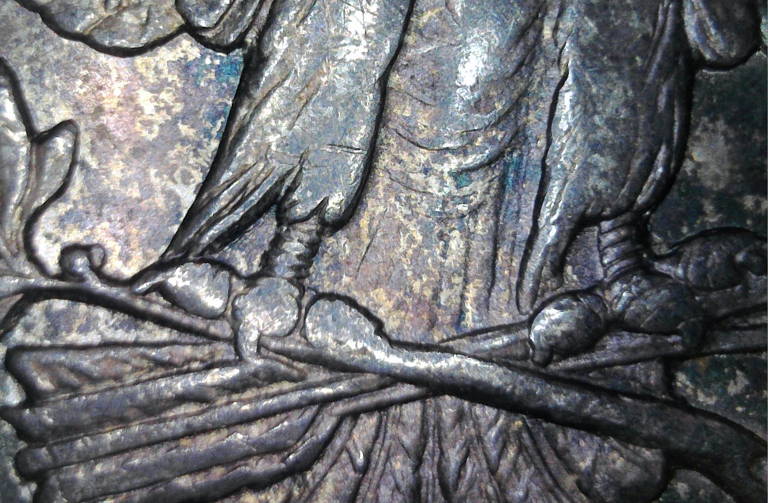 Reverse: Attributes - C4/C3f. Two olive. Doubled olive clusters, arrowheads, and wing feathers. Markers - Polishing lines between olive and arrow feather.