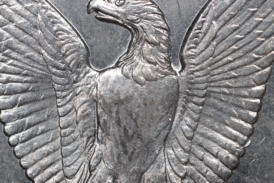 • Marker Horizontal polish line across middle of the lower tail feathers. Light die rust pits on eagle and in the wing-neck gap.