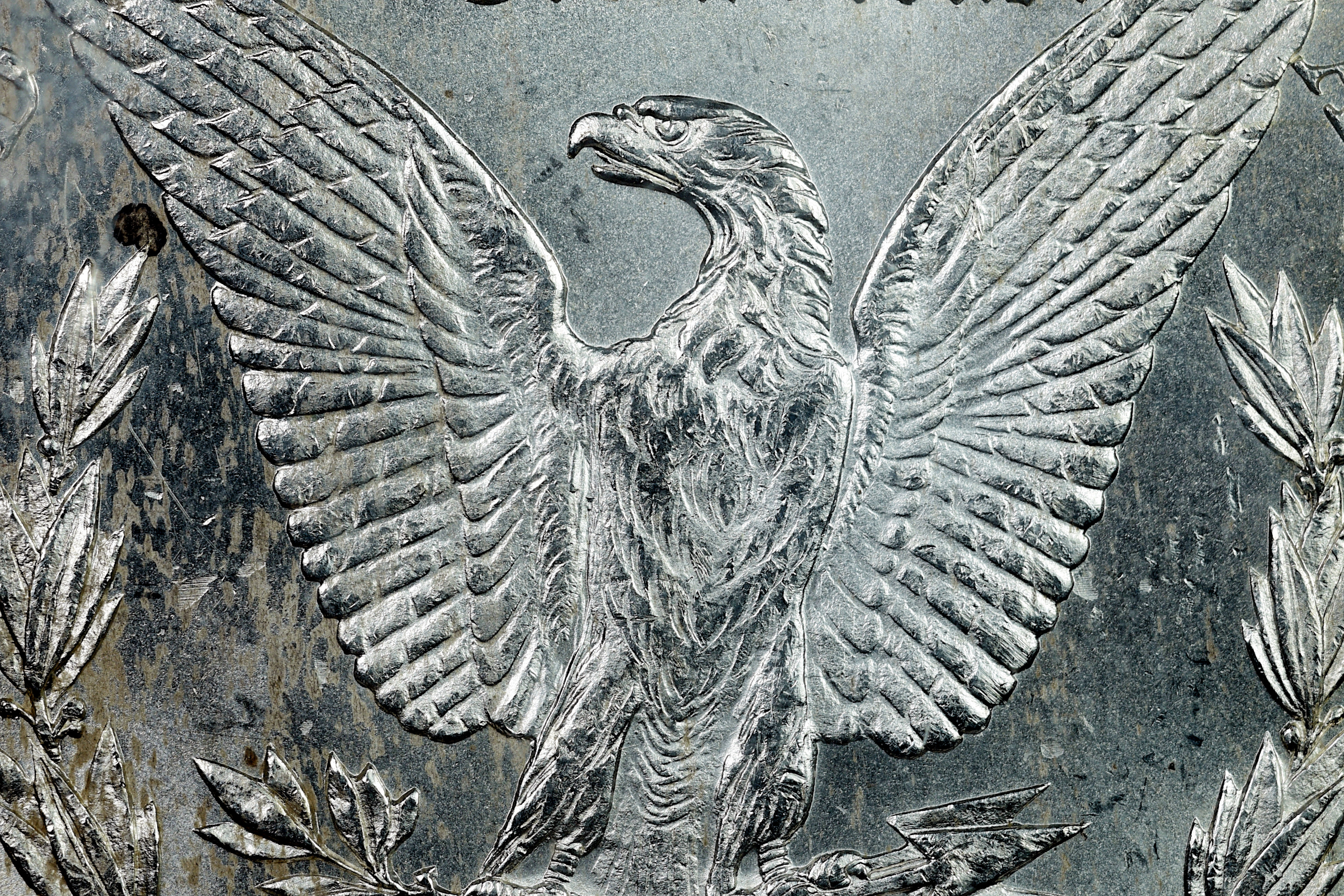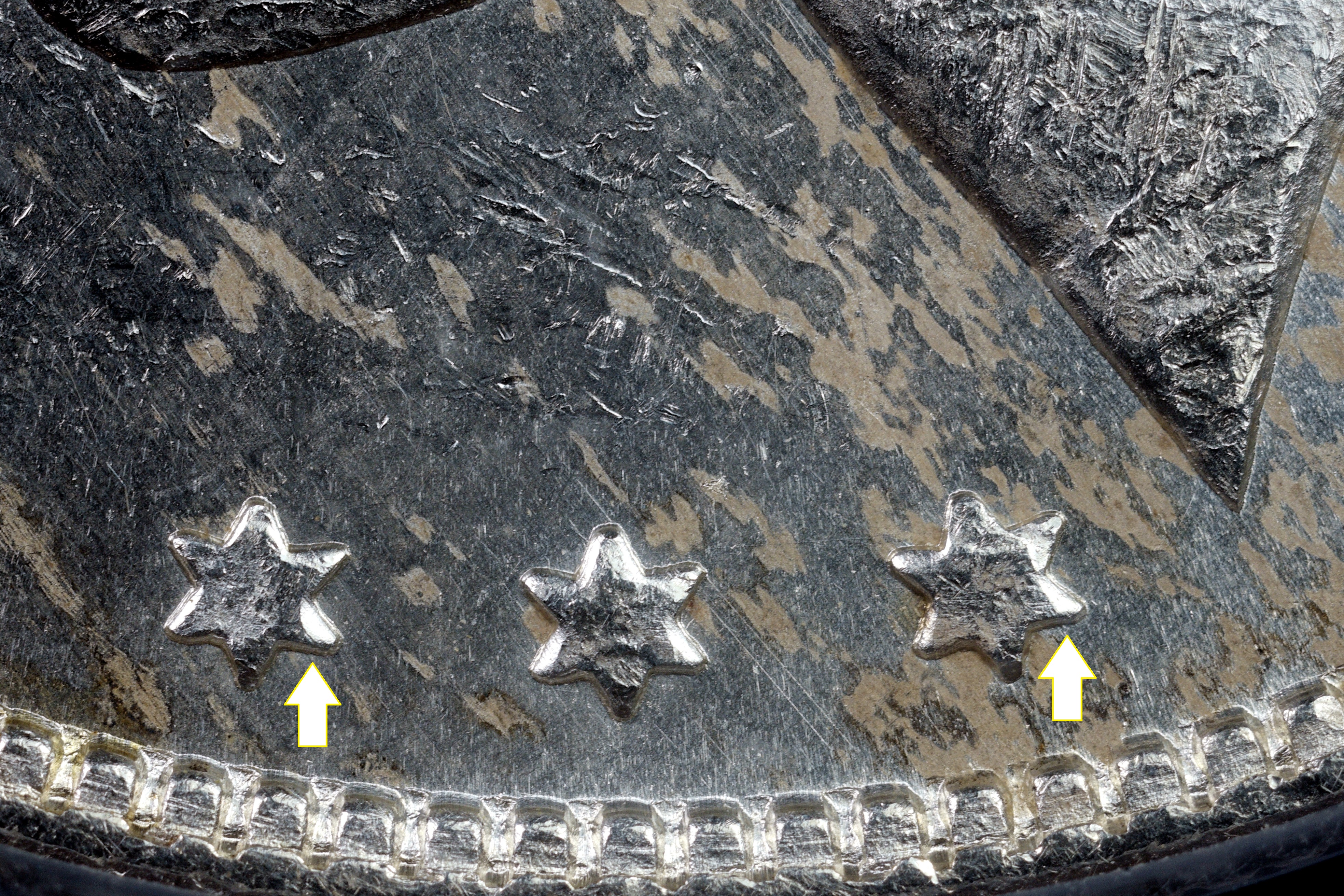 REVERSE ATTRIBUTES: A Feather was engraved between the Eagle's Right Wing (Left Wing as viewed) and Right Leg (Left Leg as viewed). The