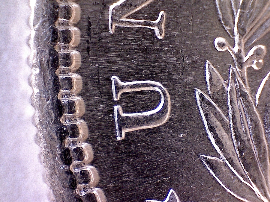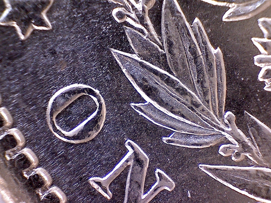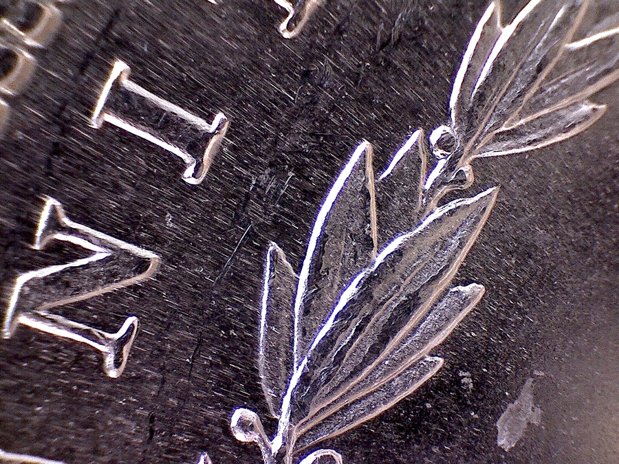 | Reverse: S/S and High. Engraved leaf tips left side of wreath. |
