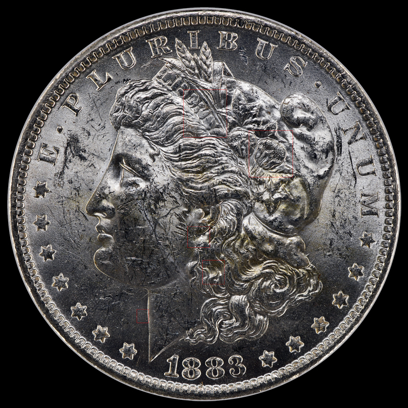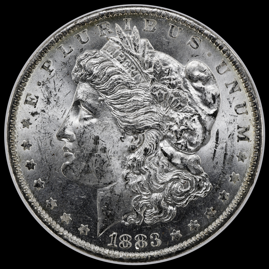 Silver Dye Photography Featured Coin for December 2016: 1883-O VNC-57 I2R5 Doubled 1, Slightly Doubled Ear, Beveled Tail Feathers